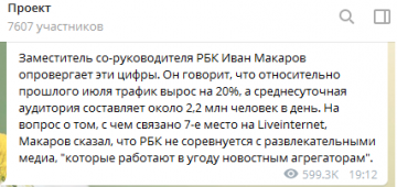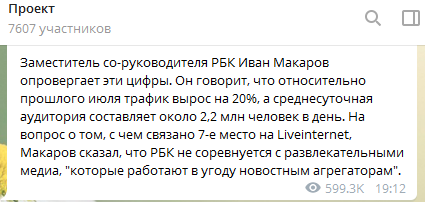 Правда, в итоге ни эта статья, ни предыдущее «расследование» про анонимные Телеграм-каналы, из-за которого на Баданина подали в суд, не привлекли к Проекту» внимания. Его сайт набираем максимум 60к просмотров в день, а в социальных сетях очень мало подписчиков.