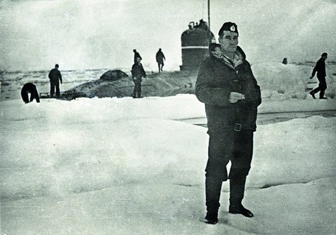 Выход на лёд на Северном полюсе. На переднем плане - командующий 1-й флотилией подводных лодок Северного флота вице-адмирал Александр Петелин