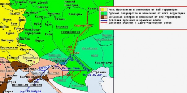 Первая русско-турецкая война из-за Астрахани началась в 1568 году. В этот раз наступавшую турецко-крымскую армию сгубили проблемы логистики. Вести боевые действия так далеко от Турции, в северных землях, османы не умели и были вынуждены заключить мир.