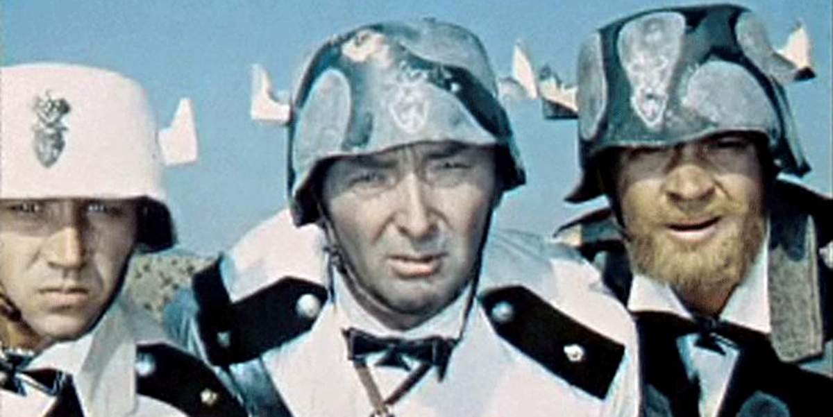 Шизомилитаризм можно обнаружить в самых неожиданных местах — и посмотреть на новогодних праздниках. Советские режиссёры любили заниматься ироничным цитированием всякого разного, в том числе околовоенного. Кто-то талантливо, кто-то нет, но все вместе они оставили после себя целый список фильмов, способных взорвать разум любителей военщины.