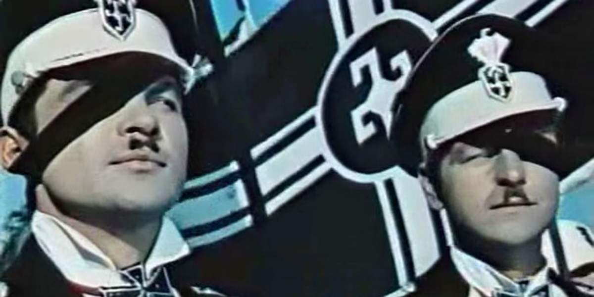 Шизофреничная униформа злодеев включает белоснежные шлемы немецкого образца с роскошными рогами в трогательном сочетании с шортами британской тропической униформы. Или вовсе загадочного происхождения кожаные трусы, заставляющие вспомнить что-то про устрицы нетипичной расцветки.