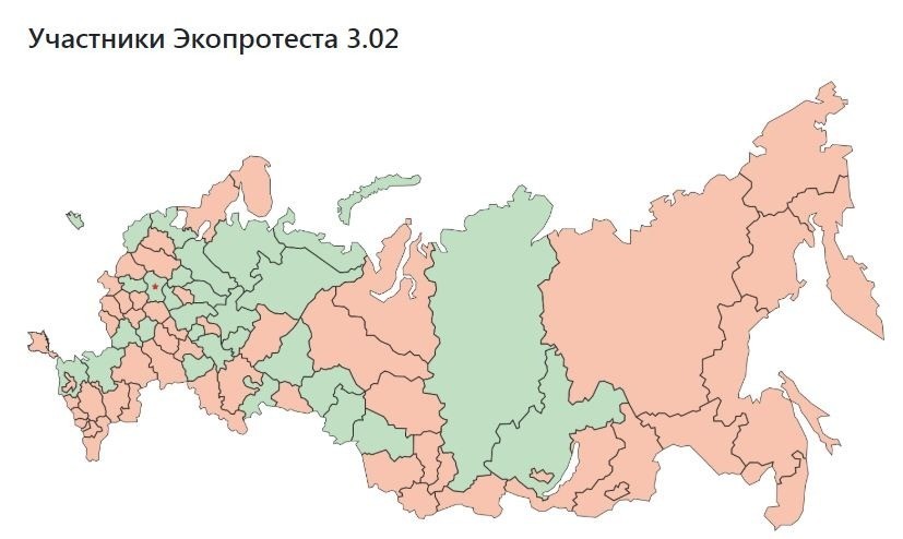 Данные на 22 января 2019 года: «красные» регионы — пока не подключены, «зеленые» регионы — участвуют в дне протеста 3.02