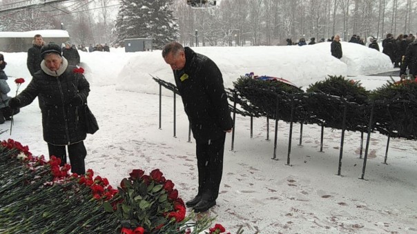 В Петербурге одно за другим следуют памятные мероприятия, приуроченной к 75-й годовщине полного освобождения Ленинграда от фашистской блокады в годы Великой Отечественной войны 1941-1945 годов. Среди центральных событий дня - торжественно-траурная церемония возложения венков и цветов на Пискаревском мемориальном кладбище. Именно здесь похоронено большинство горожан, погибших в блокаду. В памятном мероприятии на Пискаревском мемориальном кладбище принял участие врио губернатора Александр Беглов. Букет алых роз он возложил к монументу Мать-Родина, склонив перед ним голову в знак уважения к подвигу ленинградцев.