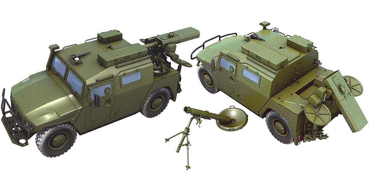 Горным стрелкам скорее пригодится 120-мм самоходный миномёт МЗ-304 «Горец» на базе «Тигр-М». Правда, схема перезарядки у него хитрая — ствол миномёта опускается и пополняется миной из кабины через специальное отверстие. С точки зрения практической скорострельности — неоднозначное решение.