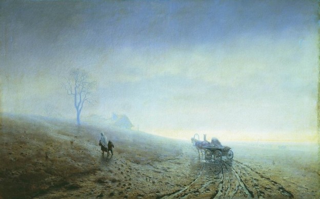 В Академии художеств Куинджи познакомился с Ильей Репиным, Иваном Крамским и другими передвижниками. Увлеченный их идеями, в 1870-е годы Куинджи создал мрачноватые полотна «Осенняя распутица», «Забытая деревня», «Чумацкий тракт в Мариуполе». Они стали отражением основных художественных принципов передвижников — без прикрас показывали неприглядную действительность. На выставках картины имели большой успех, после «Осенней распутицы» Куинджи получил звание классного художника.