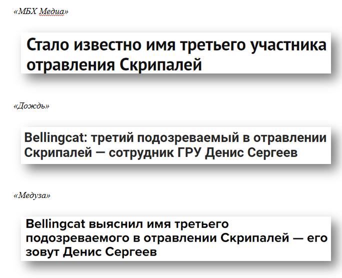 Одним из самых известных создателей фейков является британское интернет-издание Bellingcat. Оно регулярно публикует на своих страницах лже-расследования, целью которых является дискредитация России.