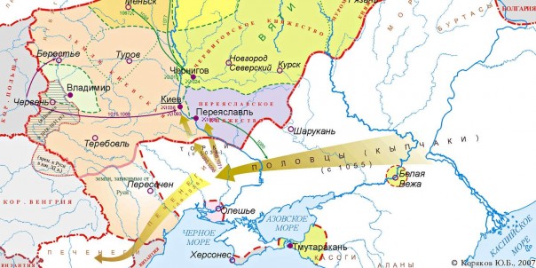 После поражения, нанесённого им князем Ярославом Мудрым и под давлением новой волны степных завоевателей — торков (гузов) и половцев — печенеги ушли к Дунаю и заняли степи севернее этой реки. И оттуда совершали страшные походы на Византию.