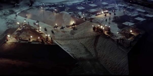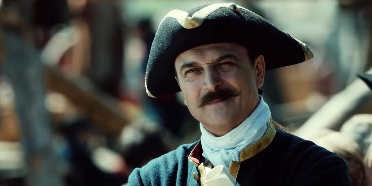 Вот войско прибывает в крепость. Форт, кстати, сделан очень хорошо — даже эффектно, с полным соблюдением правил фортификации начала XVIII века, с артиллерийскими бастионами и редутом. Но тут создатели фильма прямо противоречат книге, где мы встречаем такой диалог: