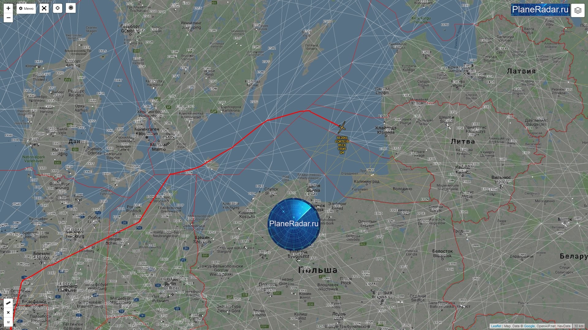 16:55 мск. Разведывательный полёт вдоль границы Калининградской области.