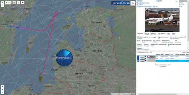 Кроме того, в 12:50 мск радиоразведчик ВВС Швеции Gulfstream GIV SP с бортовым номером 102002 был замечен в акватории Балтийского моря и в зоне полетной информации Калининградской области.
