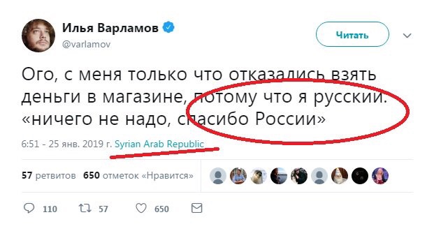 В качестве заключения, Варламов иронично интересуется «Ну как, уже готовы записаться в добровольцы и двинуть в Сирию за новыми трофеями?»