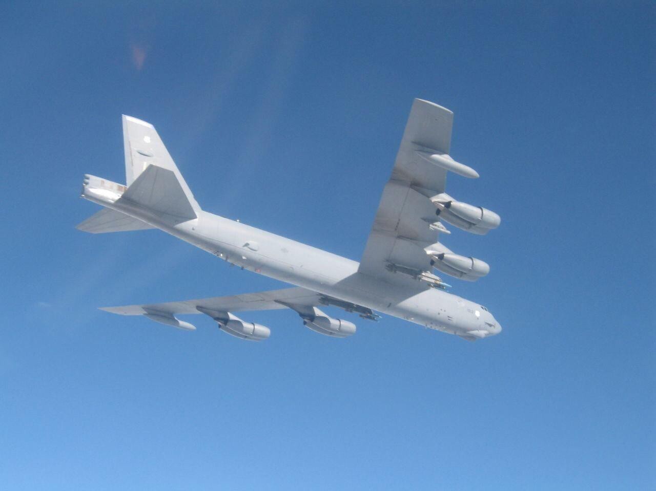 В Сети появились фото американского стратегического бомбардировщика B-52 Stratofortress, сделанные пилотом истребителя ВКС России.
