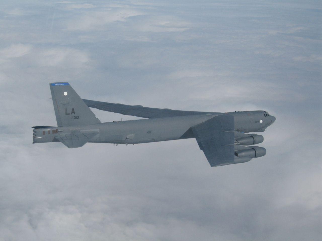 Истребитель сопровождал B-52 во время полета над Балтийским морем. Кадры настолько подробны, что можно определить не только тип самолета, но и его бортовой номер, а также идентифицировать оборудование и вооружение у него под крыльями. На пилоне между двигателями Stratofortress несет контейнер с высокоточным поисково-прицельным комплексом Lockheed Martin AN/AAQ-33 Sniper Advanced Targeting Pod (ATP) и несколько практических (не боевых) авиабомб.