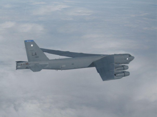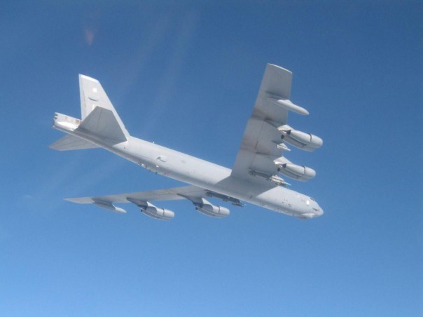 Снимки сделаны в среду над Балтийским морем, где прилетевшие из США в Европу бомбардировщики проводят демонстративные полеты. Появление B-52 у границ России носит скорее политический, чем военный характер, поскольку огромный самолет - символ холодной войны, - представляет собой легкую цель для истребителей и систем ПВО. Что и подтверждают снимки - для того, чтобы сбить B-52, взлетевшему с калининградского аэродрома на перехват истребителю не понадобилось бы даже приближаться к нему.