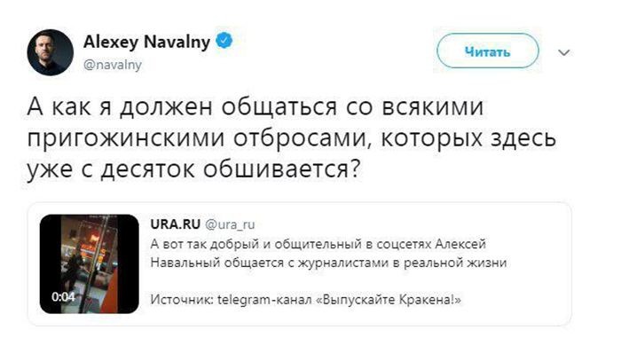 А затем история получила продолжение в Интернете. Нет-нет, не подумайте, что Навальный опомнился и решил извиниться. Наоборот, он еще раз прошелся по журналистам, назвав их отбросами.