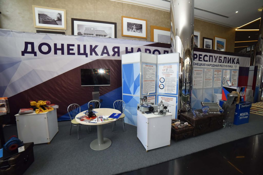 Наряду с работой профильных секций в рамках форума проходит масштабная выставка инвестиционных проектов, на которой также представлен экономический потенциал Донецкой Народной Республики.