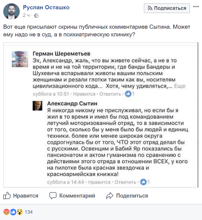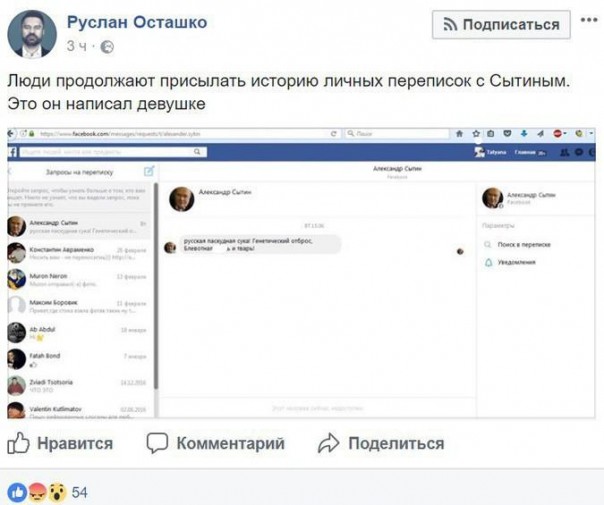 А Сытин тем временем продолжал оскорблять отдельных людей и русских в целом в переписке с согражданами.