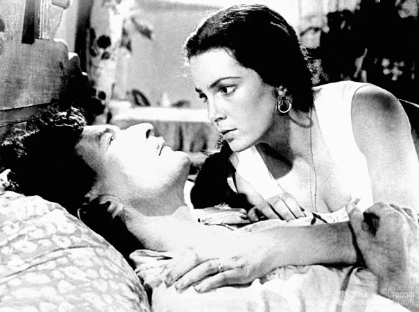 Кадр из фильма "Тихий Дон". 1957-1958. Режиссер Сергей Герасимов. В роли Аксиньи – актриса Элина Быстрицкая, в роли Григория – актер Пётр Глебов