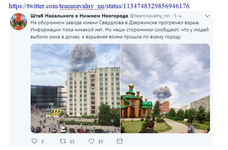 «Гигантский огненный шар, за которым последовало чернобыльское грибовидное облако, вспыхнул над заводом «Кристалл» в городе Дзержинск, к востоку от Москвы», – написали они.