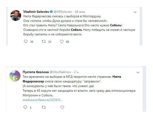 Причины подобного поведения Навального и его ставленницы очевидны: пустышка Соболь не имела никаких шансов победить известную общественницу. Аморальный блогер поступил в соответствии со своей подлой натурой, устроил травлю и заставил достойную женщину отказаться от участия в выборах.