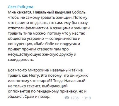 Характерно, что при всем этом Соболь имеет наглость заявлять, что травили ее саму.