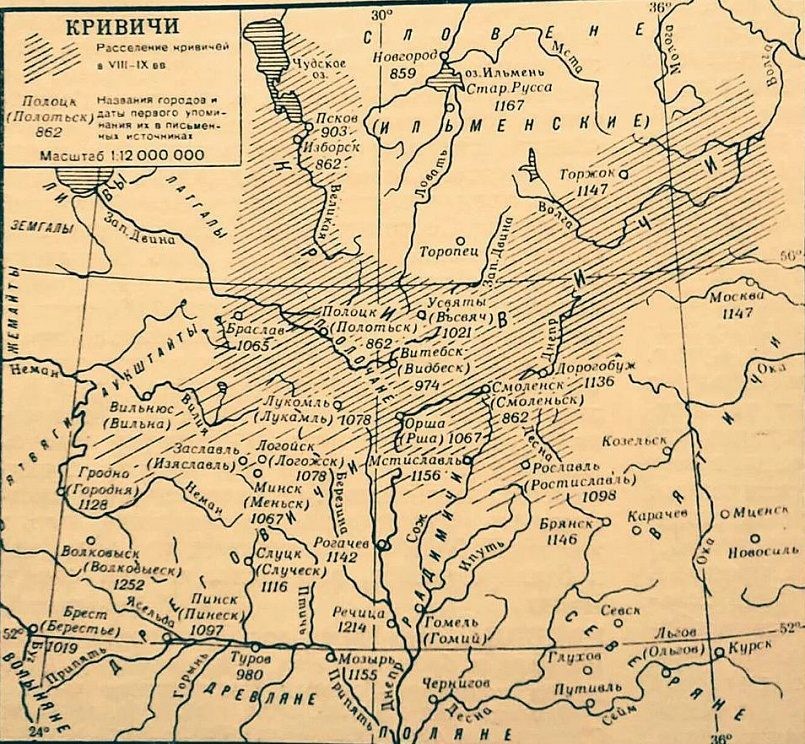 Расселение кривичей не совпадало с территорией Беларуси, включая, помимо полоцких земель, также территории Псковщины и Смоленщины