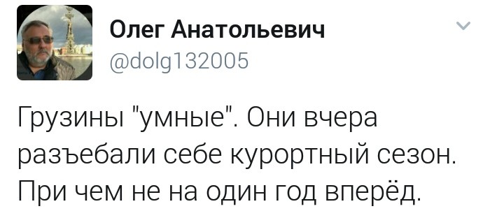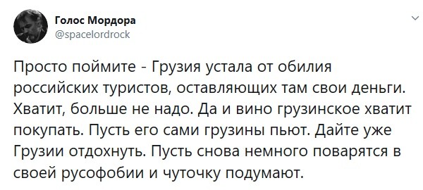 Я в прошлом году ездил в Армению. Понравилось. Потом собирался в Грузию наведаться. Теперь не дождутся. Ни ногой туда. И вина их пить не буду. Объявляю им свой личный бойкот.