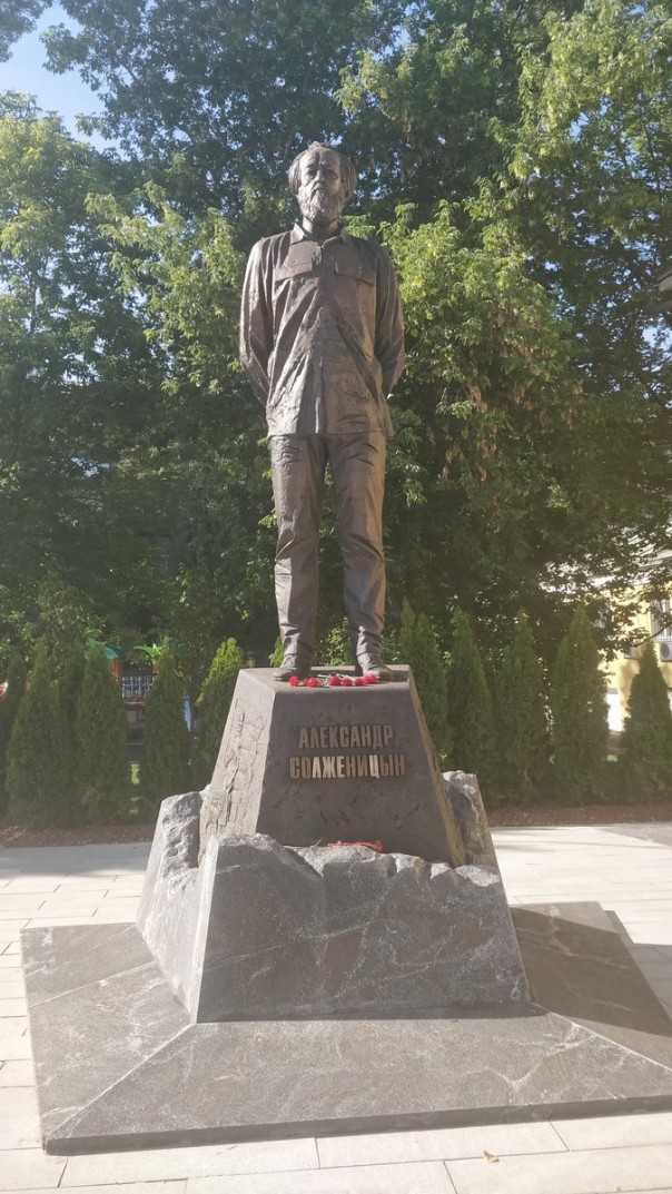 Дело в том, что некие граждане, не питающие большой любви к Александру Исаевичу, натёрли до блеска часть надписи на монументе. В итоге высветилась правда: четыре буквы из фамилии литературного власовца стали ярче и образовали слово "ЛЖЕЦ".