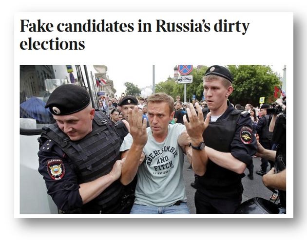 О самом «борце с коррупцией» опубликована статья в британском издании «The Times». Иллюстрирована статья фотографией, на которой запечатлен момент задержания Навального на митинге в поддержку журналиста Ивана Голунова.