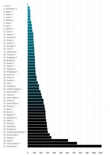 В свою очередь авторы исследования утверждают, что средняя мировая стоимость 1 гигабайта мобильного интернета составляет (на момент проведения исследования) 195,5 руб., в России - 37,9 руб. При этом в декабре 2018 года средняя стоимость 1 гигабайта мобильного интернета в мире составляла 269,3 рубля, в России - 55,5 руб.