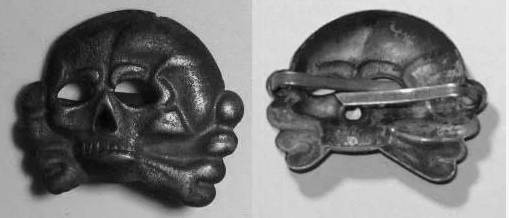 «Мёртвая голова» образца 1934 года выпускалась аж в трёх вариантах: повёрнутая налево, направо и прямо. Её носили в качестве кокарды все члены СС.