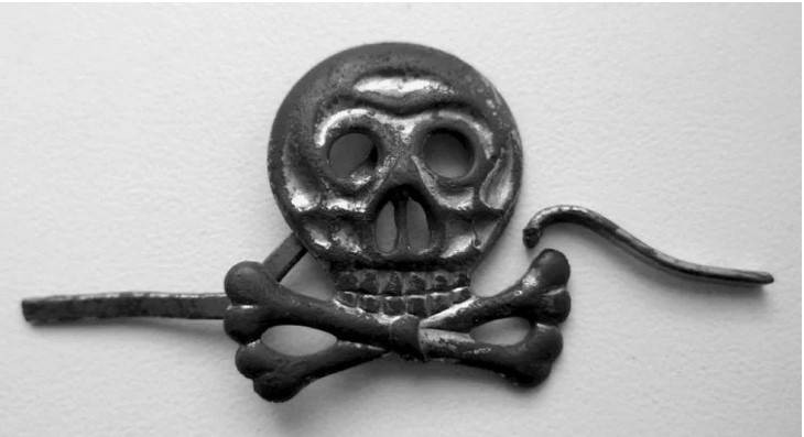 Чуть позже, в 1740 году, вышитым серебряной нитью черепом с двумя скрещёнными костями были украшены чёрные предметы, использованные во время похорон короля Пруссии Фридриха-Вильгельма I. Черное с серебром – вполне для королевских похорон, но Фридрих-Вильгельм канул в историю, а вот черепа остались.