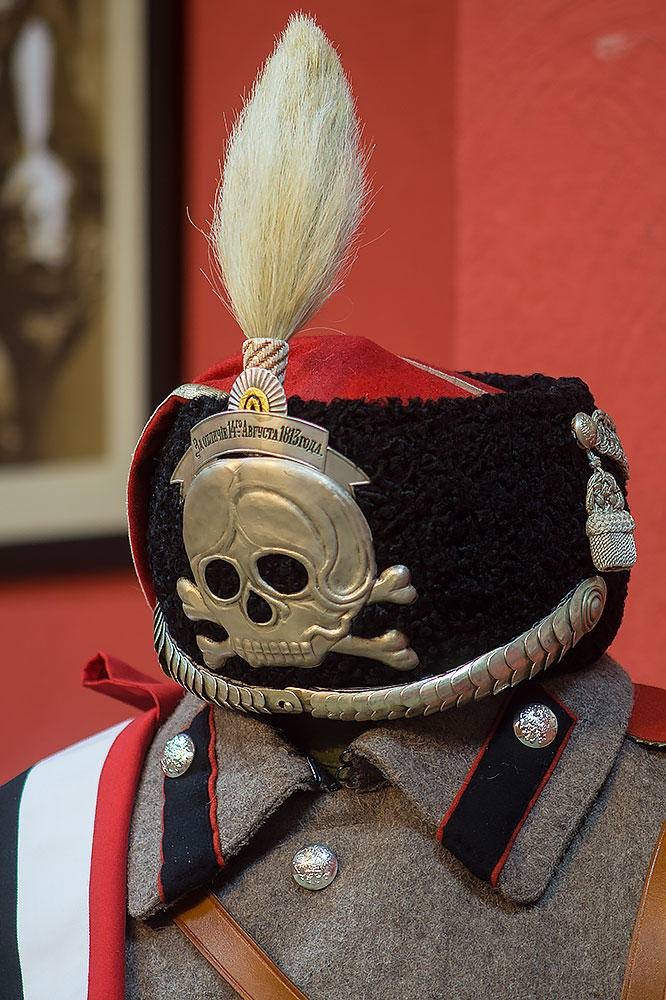 Между прочим, она присутствовала и на головных уборах вполне себе русских военных. Вот вам головной убор гусар 5-го Александрийского полка. Из музея полка что в Самаре. Вполне приличный полк был, кстати. Слабаков члены императорской семьи на шефство не брали.