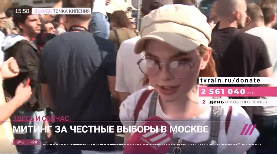 Прокол на Дожде. Взяли интервью у 14-летней девочки: «Я здесь впервые, случайно тут оказалась. Потому что я поддерживаю и разделяю взгляды, которые МЫ здесь отстаиваем», - рассказала малолетняя дурочка. Её сразу же убрали из эфира.