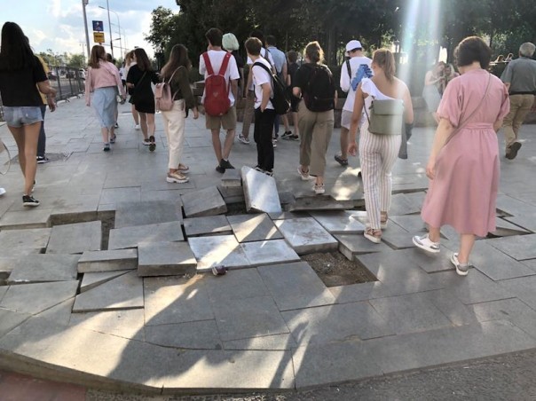После митингующих свиней осталось вот это. По их задумке, скорее всего, куски дорожной плитки должны были лететь в полицию и Росгвардию.