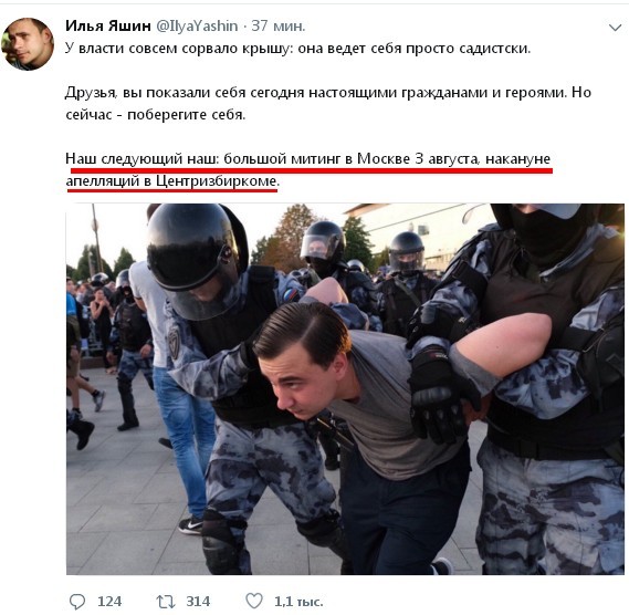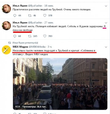 Если бы Илья Яшин был хоть чуть-чуть не чмошка - он бы приехал, но он умудрился слиться ДВА РАЗА ЗА ПРОТЕСТНЫЙ ДЕНЬ! Владимир Ильич Ленин мемуары писал в тюрьме и передавал их, написав молоком - я с детства знаю. Илья получает донатики и сливает любой протест. Кстати, Соболиха приехала и ее повязали. Правда, в этот раз без эффекта - даже постить не буду, Любовь, как мне кажется, зря тратит свой дар - ей бы так пошли фильмы ХХХ, причем настоящие, а не так порнуха, которую нам показывают оппозиционеры. Потому что снять хорошее порно - это тоже работа!