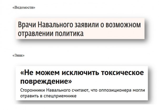 Не успел Алексей Навальный переступить порог больницы, как либеральные СМИ в один голос стали говорить о возможном отравлении блогера. Хотя никаких оснований для таких предположений не было: отекшее и покрасневшее лицо вряд ли можно считать признаками опасного для жизни состояния.