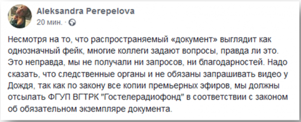 Так что благодарность Следственного комитета «Дождь» заслужил. Хотя и преследовал совершенно другие цели.