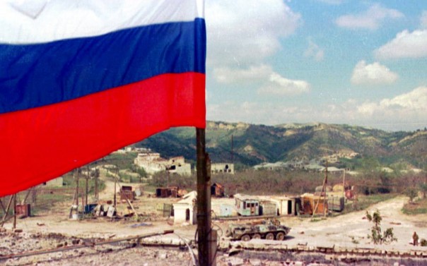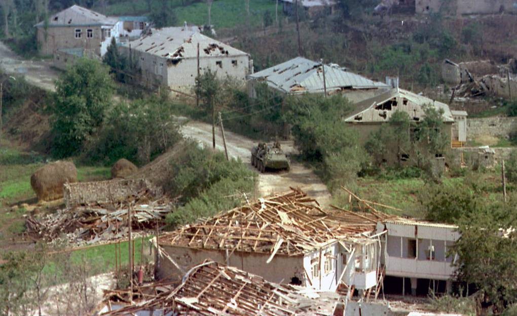 Российский флаг над селом Карамахи, 13 сентября 1999 года