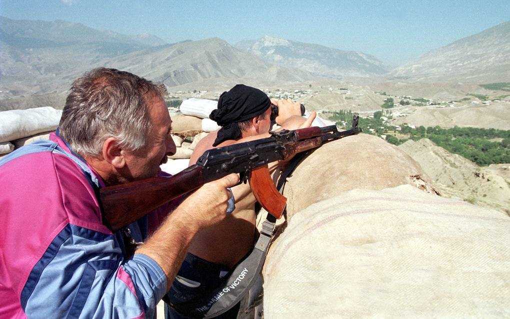 Ополченцы с высотных укреплений ведут перестрелку с противником, 19 августа 1999 года