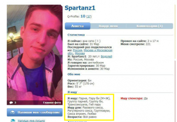 Весьма красноречива и информация, которая размещена извергом на сайте знакомств.
