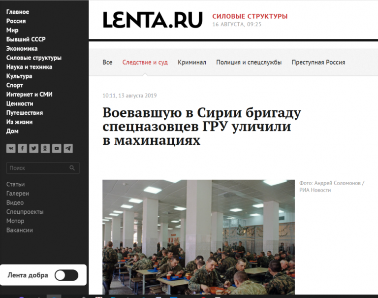Ранее в другом столь же «неполживом» источнике был опубликован материал под не менее «правдивым» заголовком – «Воевавшую в Сирии бригаду спецназовцев ГРУ уличили в махинациях».