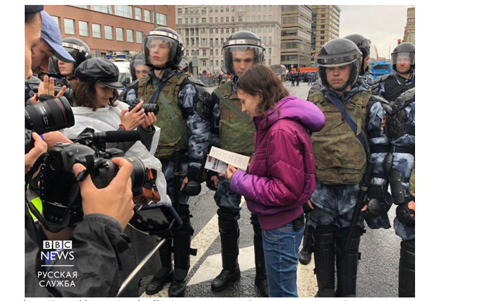 Она стала символом акции 27 июля, когда, заикаясь, читала сотрудникам ОМОНа Конституцию РФ. Правда, что именно она читала, было непонятно. Уже 10 августа девушка снова пришла на митинг с Конституцией. Затем устроила сидячую забастовку. А уже 17-го Ольга возглавила шествие подростков на Арбате. Пришла туда она, кстати, в «мерче» в поддержку Соболь.