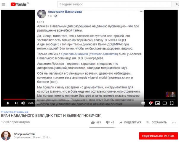 Правда, доступа у подручных Навального к анализам не было, а «осмотр» пациента происходил через щелочку двери. Однако это не смутило оппозиционные каналы на Youtube, и они залили «новостной» обзор на этот инфоповод.