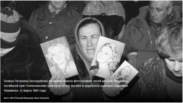 Страна о кораблекрушении узнала не сразу. Пострадавшим было велено не сообщать родственникам о случившемся, а за государственный счет всем отправили телеграммы «Жив и здоров. Город Новороссийск». Слухи, конечно, уже пошли, но в пароходстве на звонки взволнованных граждан бодро отвечали, что всё в порядке, «Адмирал Нахимов» в плавании. Новороссийск сразу закрыли для иностранцев, да и нашу прессу пускали неохотно. Снимать журналистам запретили, а уже отснятые фотокорами пленки «люди в штатском» засветили.