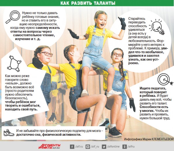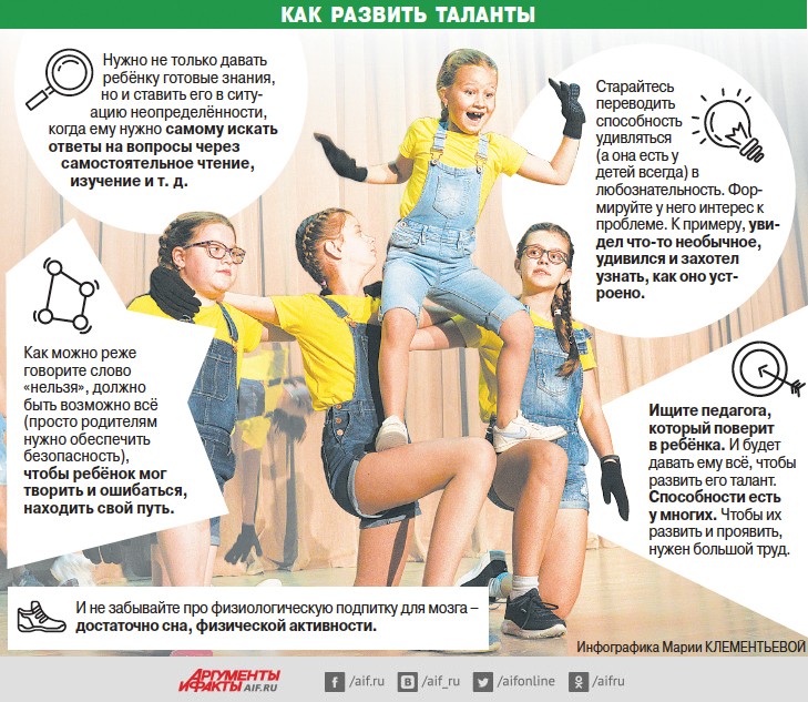 «Когда родители самозаб-венно водят ребёнка в десяток развивающих кружков, приговаривая при этом: „Вырастешь — сам спасибо скажешь“, вряд ли его таланты будут развиваться. Они с большим успехом будут подавляться, — считает психолог Дима Зицер. — Потому что в этот момент мама и папа удовлетворяют свои собственные потребности и амбиции, стараются понравиться окружающим или даже вызвать их зависть. Если вы узнали себя в этом портрете, остановитесь, попейте водички и начните вместе исследовать, как устроен ваш ребёнок, помогая ему создать комфортный мир, провоцирующий к по-знанию и раскрытию интересов и талантов. Сделайте так, чтобы он рассказал вам о них».