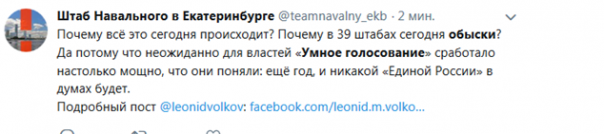 В штабах Навального проходят обыски. Шайка блогера во главе с его толстым другом Леней Волковым пытаются оправдаться и перекрутить факты, заявляя, что все это политические репрессии и успех УГ. Но на деле – это отмывание миллиарда рублей и неуплата налогов.