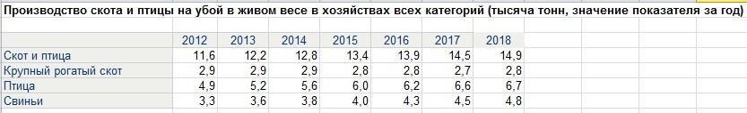 Ну а теперь чтоб обнулить любые попытки рассказать про то что "это всё из туалетной бумаги и сои" приросло. Мясо на убой в живом весе. Да, это с головами, кишками и шкурами, но нас то интересует прирост.