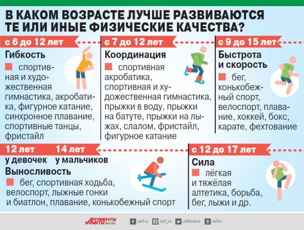 Хотя и у нас в спортивную школу не зачислят до 6–7 лет (фигурное катание, спортивная и художественная гимнастика) или даже до 10–11 лет (стрельба, дзюдо и др.). А в серьёзные секции по различным единоборствам обычно принимают с 7–10 лет. Всё, что раньше, сводится к общей физической подготовке (ОФП), что тоже совсем неплохо. Для каждого вида спорта утверждены свои нормативы зачисления в группы начальной подготовки (федеральные стандарты спортивной подготовки). Кстати, надо иметь в виду, что даже в них в государственной спортивной школе будет отбор – по наличию природных данных и даже уровню готовности.