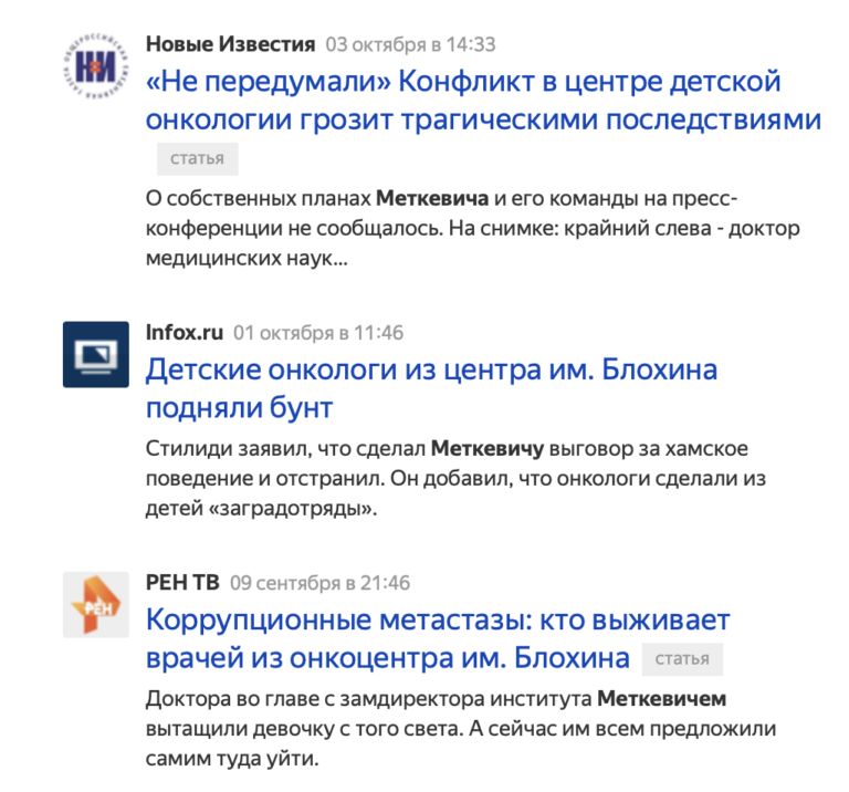 — Глава НМИЦ имени Блохина заявил, что «ни дня не пожалел» о назначении Варфоломеевой. По его словам, она ужесточила дисциплину в НИИ детской онкологии и указала некоторым сотрудникам на конфликт интересов из-за того, что они являются учредителями благотворительного фонда (какого, не уточняется). Meduza